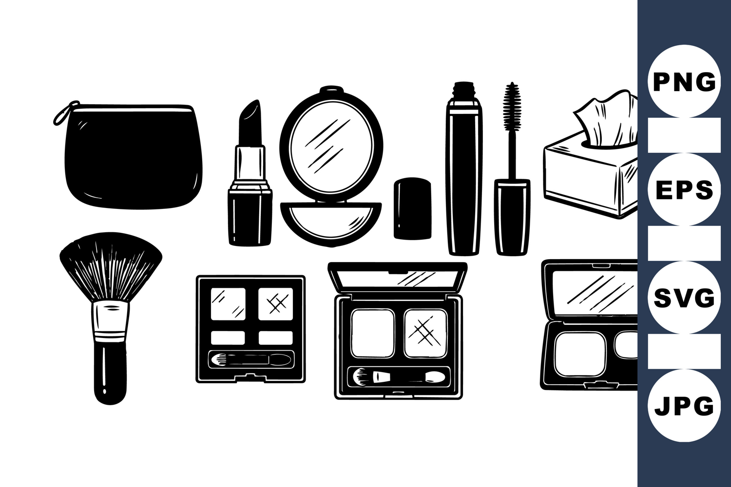 Makeup Brush Clipart Tissue Box Illustration Black Silhouette Clipart Lipstick Vector Art Compact Mirror Design Mascara Tube Silhouette Makeup Palette Bundle Beauty Cosmetic Set Skincare Essentials Kit Makeup Bag Graphics