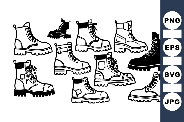Black And White Clipart Hand Drawn Boots Fall Season Boots Vector Boot Clipart Combat Boot Collection Hiking Boot Set Fashion Footwear Pack Lace Up Boot Design Work Boot Illustrations Urban Style Boots