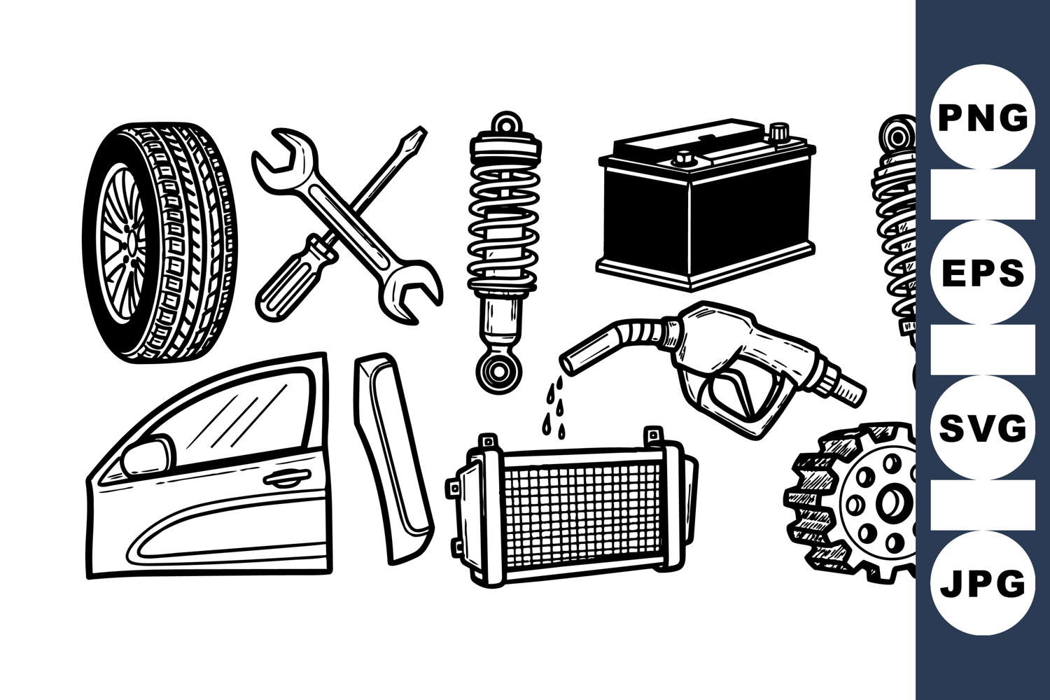 Car Repair Bundle Auto Mechanic Set Vehicle Parts Clipart Garage Tools Pack Car Maintenance Kit Engine Repair Vector Mechanic Toolkit Svg Auto Service Graphics Car Parts Collection Repair Shop Elements