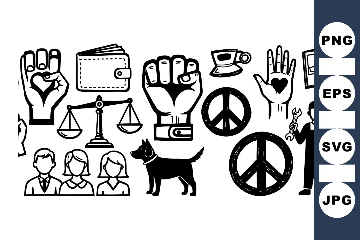 Peace Symbol Clipart Dog Outline Clipart Social Justice Icons Activism Vector Set Human Rights Icons Protest Fist Vector Community Support Graphics Worker Silhouette Pack Law Scales Illustration Love Hand Icon