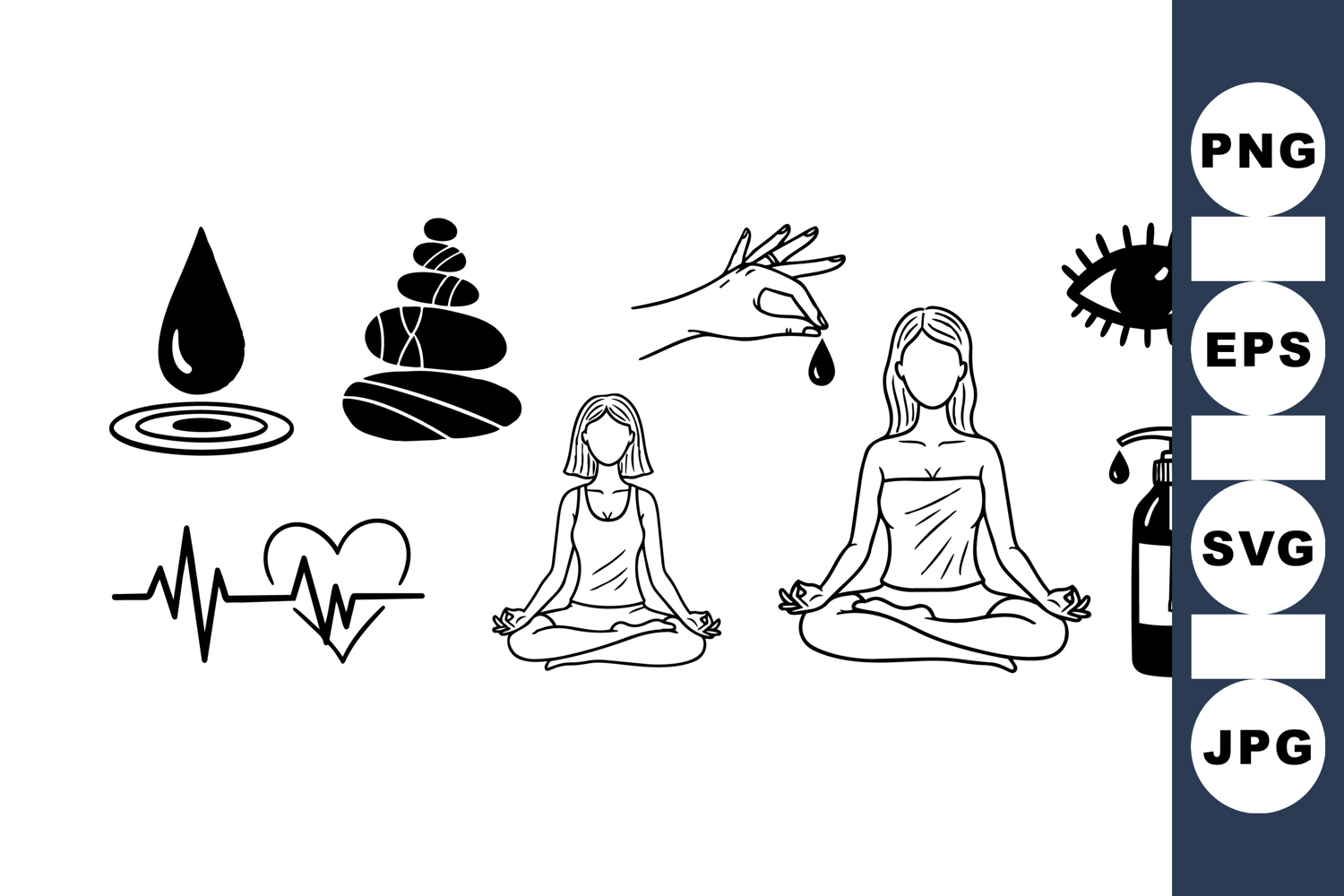 Yoga Meditation Clipart Healthcare Icon Pack Minimal Wellness Icons Spa Relaxation Set Calm Mind Illustrations Zen Lifestyle Graphics Therapy Drop Vectors Balance Stones Icons Meditation Pose Images Natural Energy Bundle