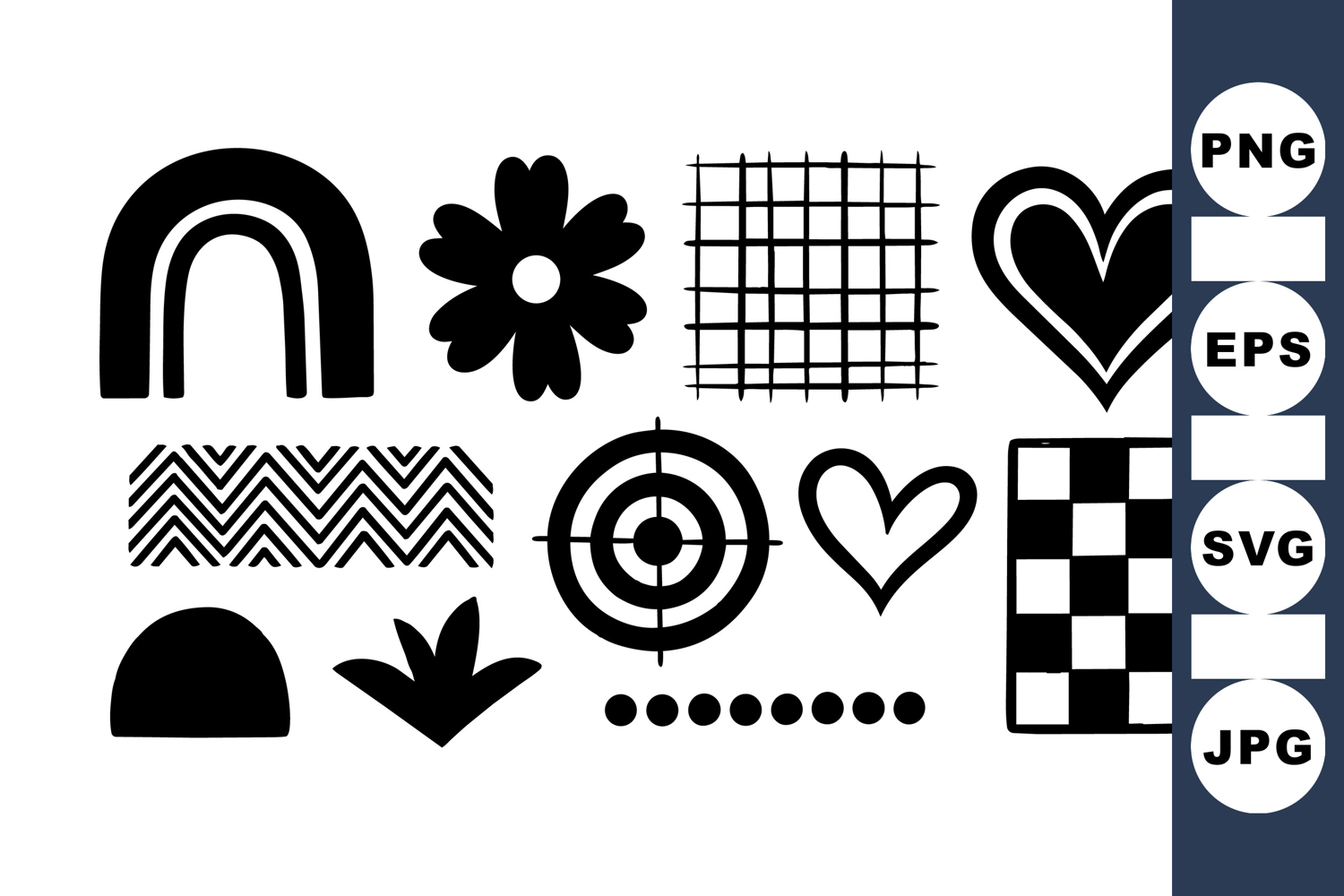 Digital Cut File Vector Icon Bundle Black And White Design Geometric Pattern Set Svg Icon Collection Modern Craft Graphics Abstract Shape Kit Simple Design Bundle Minimalist Shape Clipart Printable Art Pack