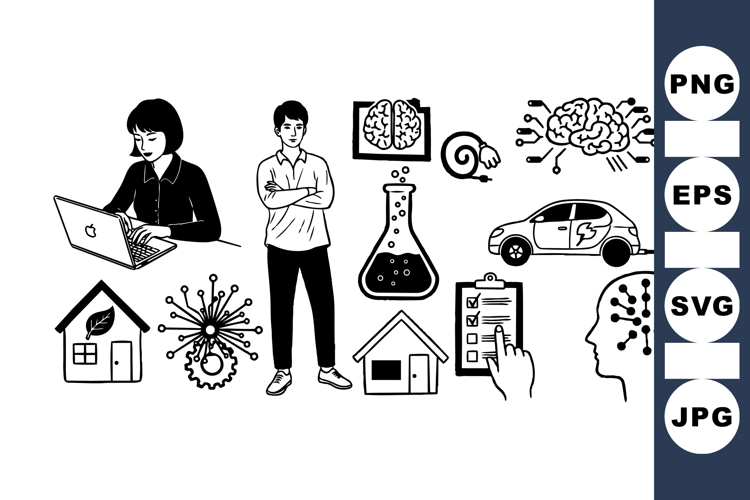 Electric Car Vector Laboratory Flask Icon Eco Friendly House Data Analysis Icon Technology Vector Set Digital Brain Illustration Brain Science Clipart Scientist Character Clipart Research Checklist Graphic Modern Science Graphics