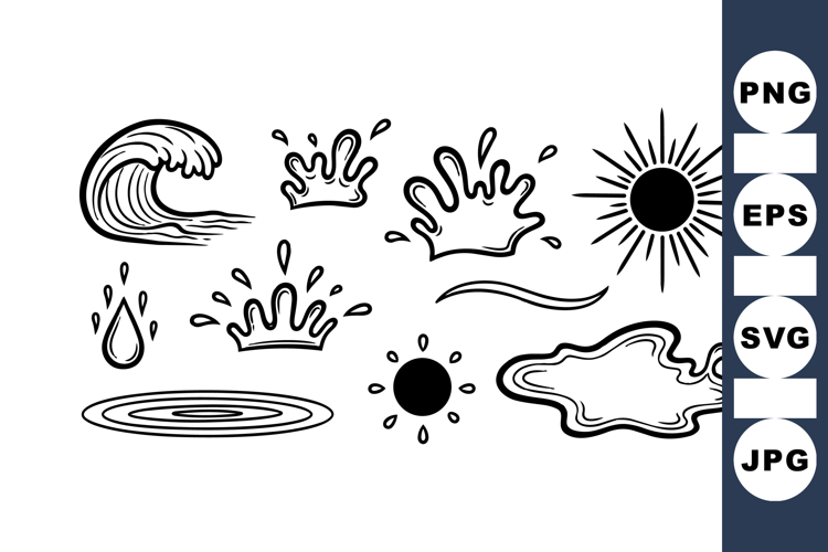 Similar Design Products to Hand Drawn Water Splash And Sun Vector Clipart Set