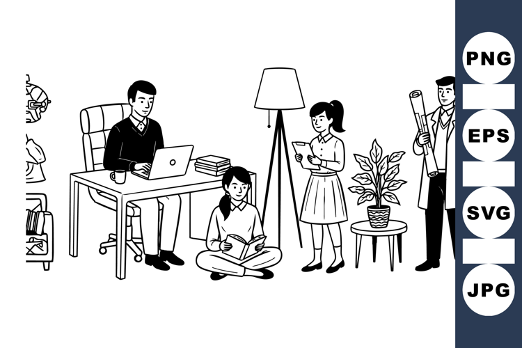 Black And White Office Scene Vector Svg Bundle example image 1