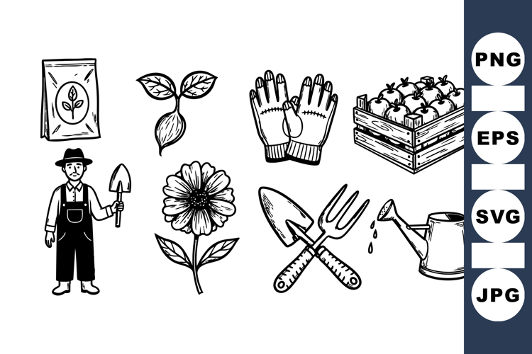 Gardening Tools Clipart Hand Drawn Garden Vector Plant Illustrations Seed Packet Graphic Watering Can Artwork Flower And Sprout Gardener Character Design Farm Crate Vector Gardening Gloves Drawing Spring Garden Collection