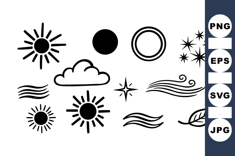 Minimalist Vector Sun Clouds Stars Leaf Set example image 1
