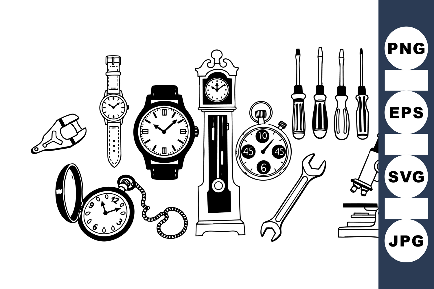 Vintage Clock And Tool Vector Clipart Bundle For Crafts example image 1