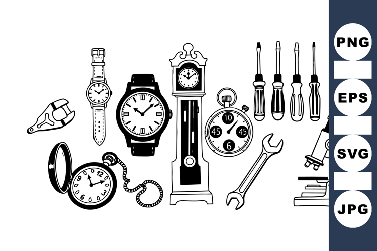 Vintage Clock And Tool Vector Clipart Bundle For Crafts
