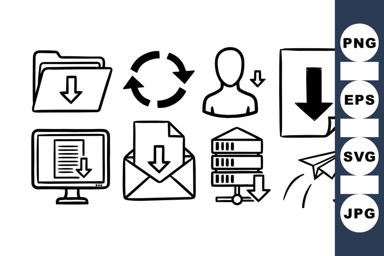 Hand Drawn Icon Paper Plane Icon Simple Sketch Icons Download Icon Set Vector Download Clipart Digital File Icons User Download Graphic Server Data Icon Email Download Symbol Folder Arrow Design