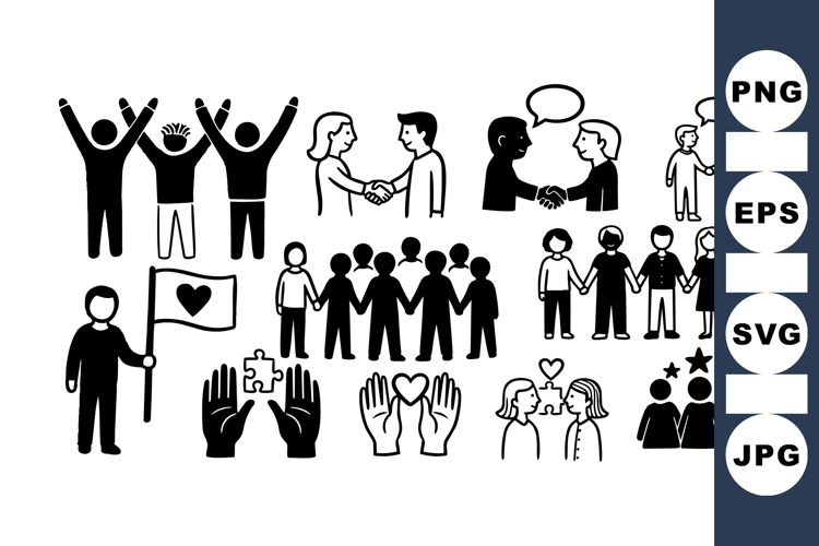 Togetherness Clipart Inclusive Design Elements Teamwork Vector Set Helping Hands Vector Community Support Graphics Social Cause Icons Unity Symbol Pack Solidarity Icon Bundle Partnership Icon Set Support Group Icons