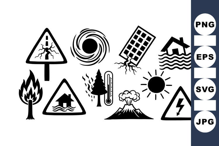 Natural Disaster Warning Icons Vector Set For Safety Designs example image 1
