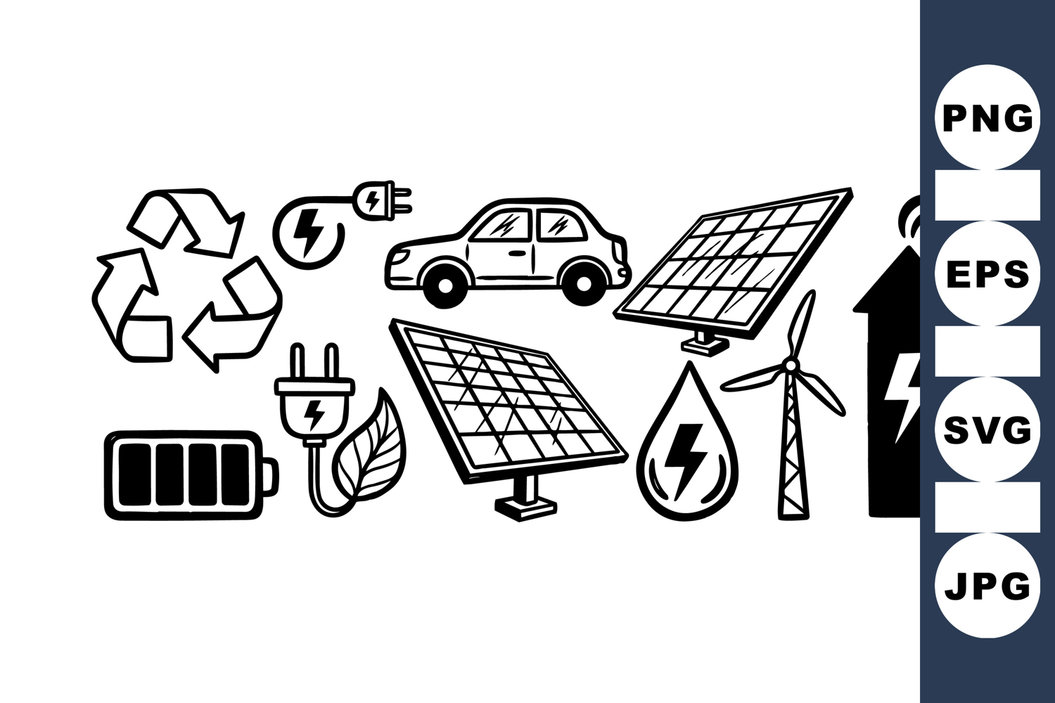 Renewable Energy Icons Wind Turbine Clipart Solar Panel Vector Eco Friendly Graphics Recycle Icon Collection Electric Car Design Environmental Icons Set Battery Charge Illustration Energy Saving Symbols Green Power Clipart