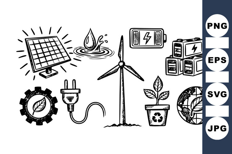 Hand Drawn Eco Energy Vector Clipart Bundle