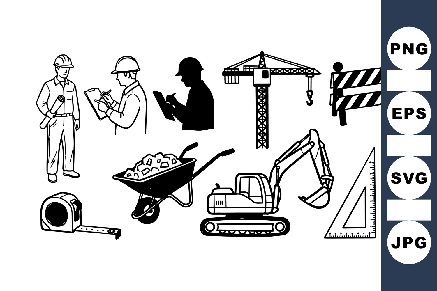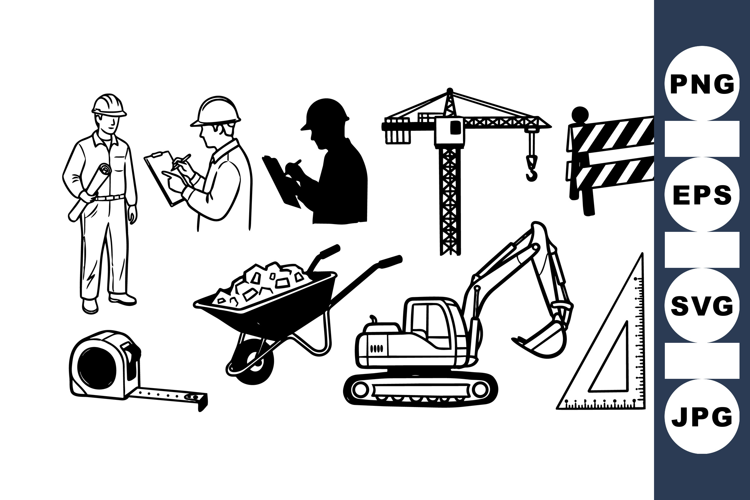 Construction Worker Vector Heavy Machinery Clipart Construction Safety Gear Construction Site Tools Engineering Drawing Set Worker Silhouette Design Builder Equipment Clipart Industrial Tool Vectors Excavator Machine Graphic Construction Site Illustration