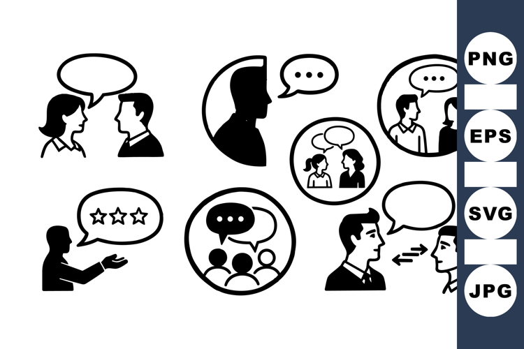 Speech Bubble Icons Communication Icon Set Group Discussion Icons Business Conversation Vector Chat Dialogue Graphics Feedback Rating Symbols People Talking Illustrations Interaction Vector Pack Message Bubble Icons Social Chat Collection