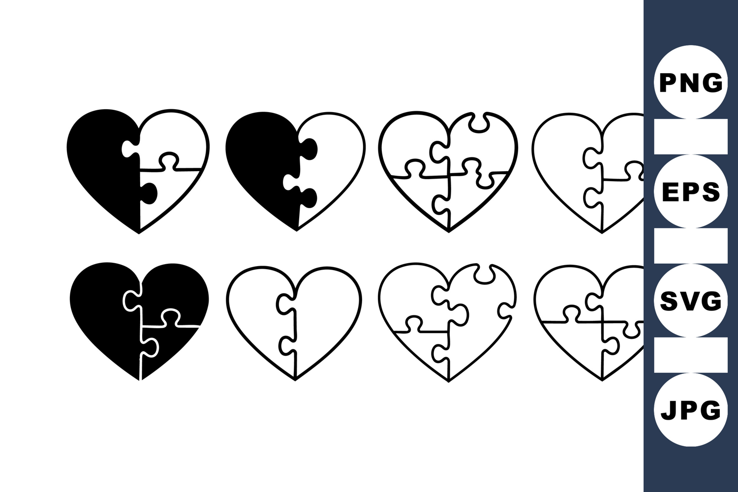 Digital Cut File Valentine Heart Svg Heart Shape Vector Love Symbol Clipart Black White Silhouette Puzzle Piece Icon Puzzle Heart Clipart Romantic Puzzle Design Relationship Svg Bundle Heart Puzzle Collection