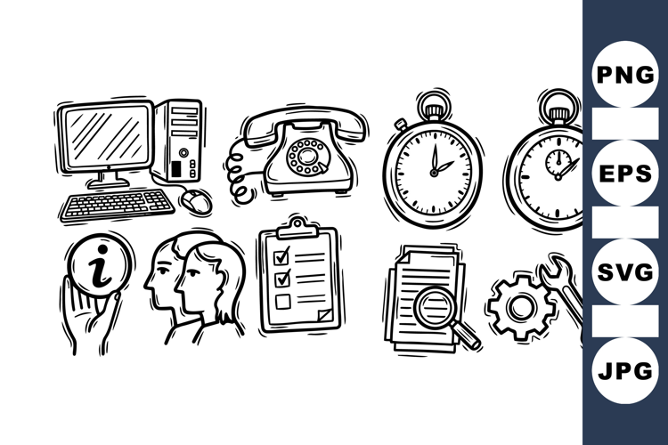 Vintage Phone Clipart Office Tools Clipart Business Vector Icons Customer Service Vector Time Management Set Hand Drawn Office Clipboard And Checklist Technical Support Graphics Computer Desktop Icons Inspection And Settings