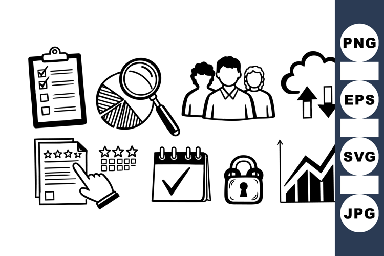 Magnifying Glass Icon Business Analytics Icons Checklist Vector Pack Growth Chart Illustration Rating Stars Graphics Data Report Graphics Team Management Icons Security Padlock Symbol Cloud Upload Download Calendar Scheduling Design