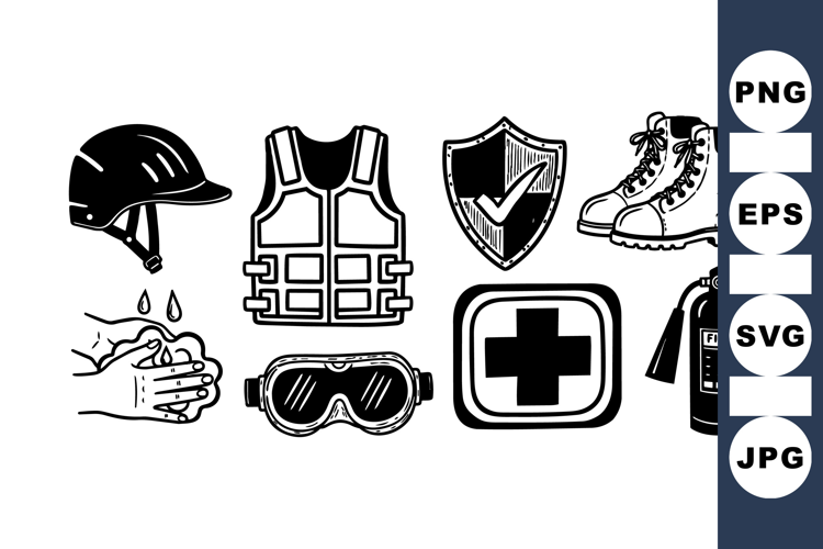 Hand Drawn Safety Gear Icon Vector Bundle example image 1