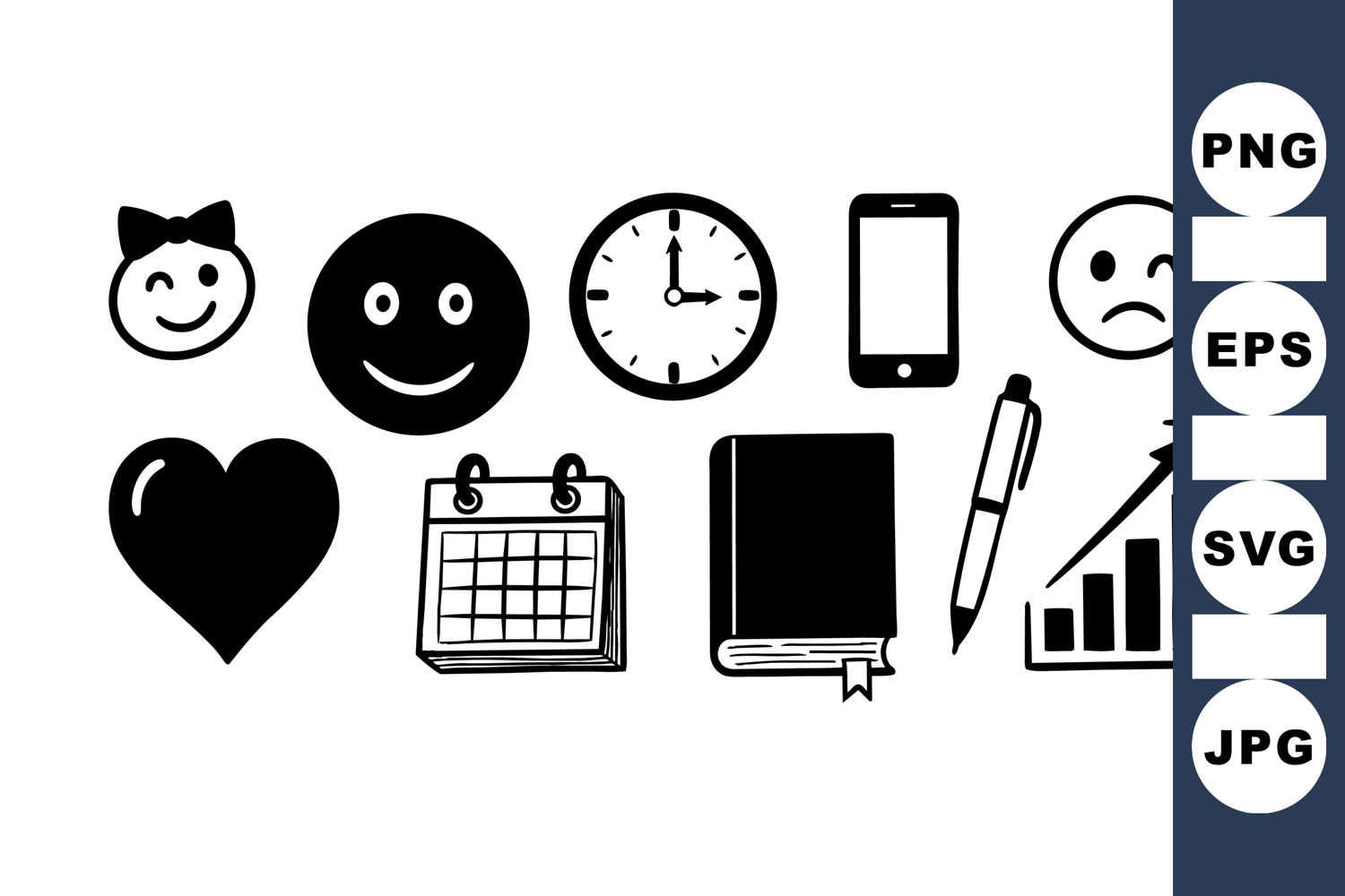Hand Drawn Icons Planner Graphic Set Business Icon Pack Black White Vector Productivity Icon Set Digital Office Icons Office Vector Set Schedule Clipart Bundle Emoji Expression Icons Work Supplies Clipart
