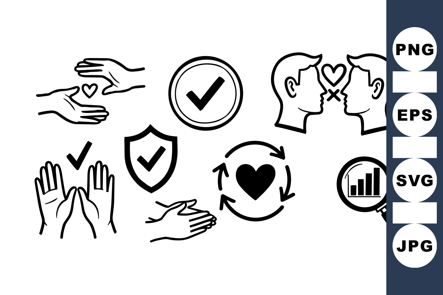 Protection Shield Icons Heart Love Symbols Hand Care Icons Check Mark Graphics Human Face Profiles Approval Symbol Set Communication Heart Icons Health Care Vectors Business Trust Icons Magnifying Glass Graph