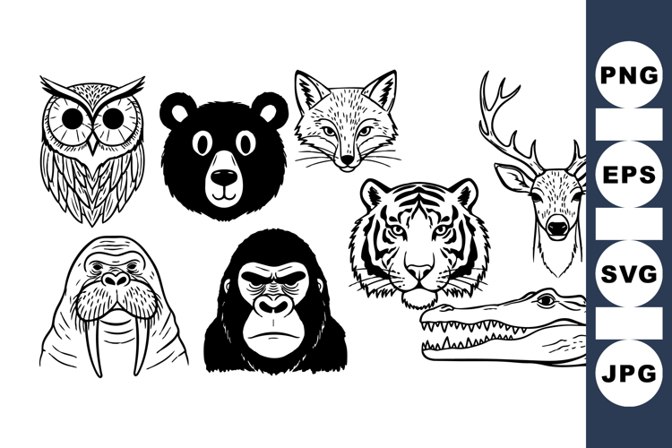 Wild Animal Head Vector Set For Crafts And Design example image 1
