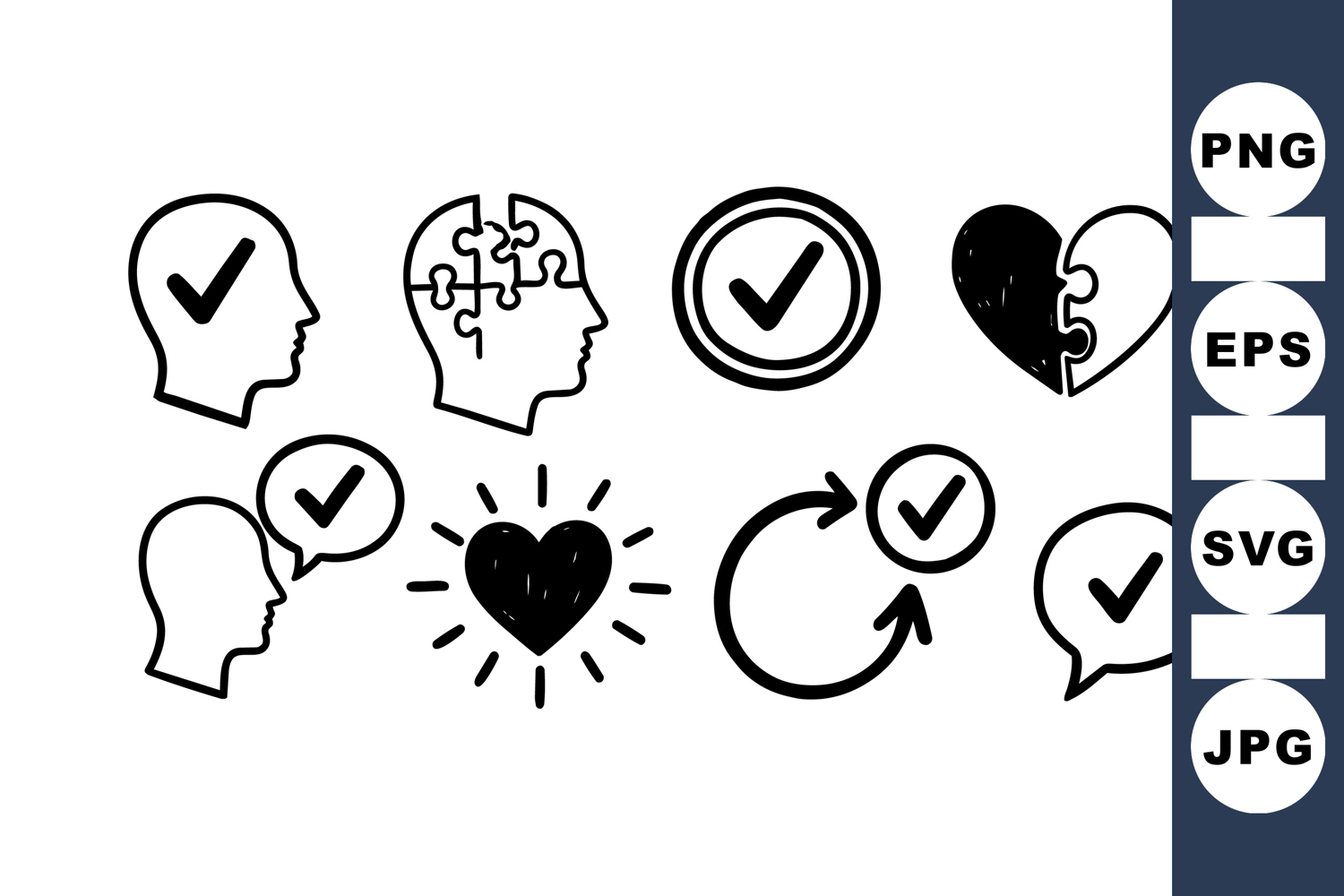 Mental Health Graphics Positive Mindset Icons Wellness Vector Pack Mental Health Icons Mental Wellness Vectors Therapy Icon Set Psychology Symbol Bundle Emotional Support Clipart Mind Care Illustrations Brain Puzzle Icons