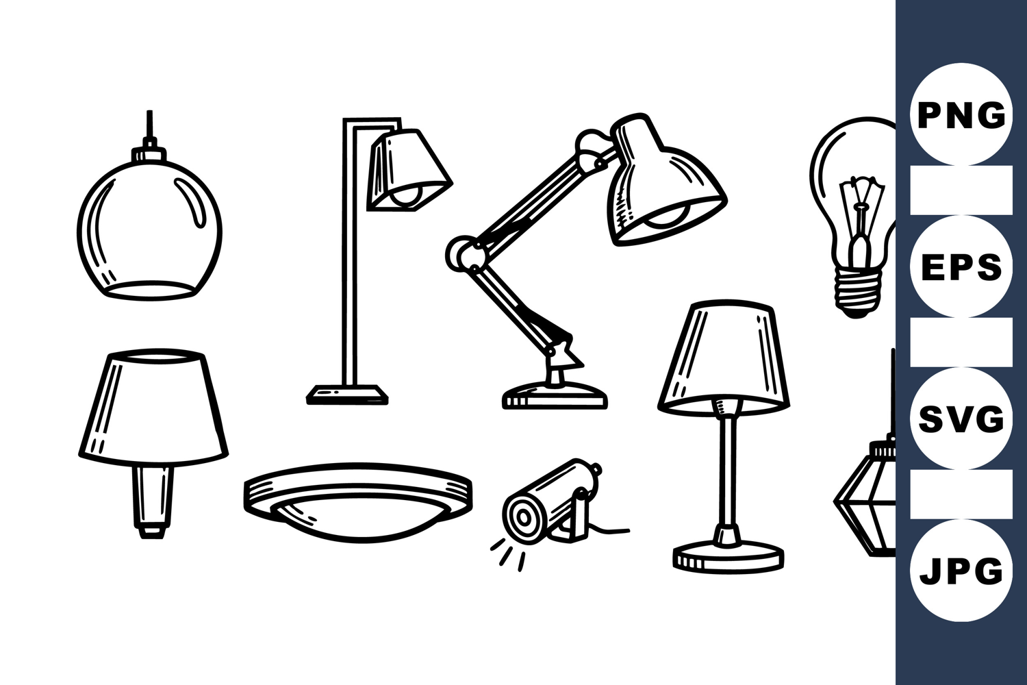 Black And White Icons Floor Lamp Vector Pendant Light Design Desk Lamp Illustration Hand Drawn Lamp Lighting Icon Set Vector Lamp Clipart Table Lamp Drawing Spotlight Clipart Bundle Ceiling Light Artwork
