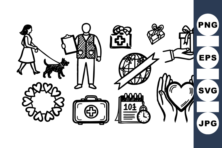 Healthcare Icon Set Dog Walking Clipart Medical Aid Clipart Calendar Date Illustration Helping Hands Vector Community Support Icons Charity Vector Bundle Volunteer Work Icons Gift Donation Graphics First Aid Kit Design