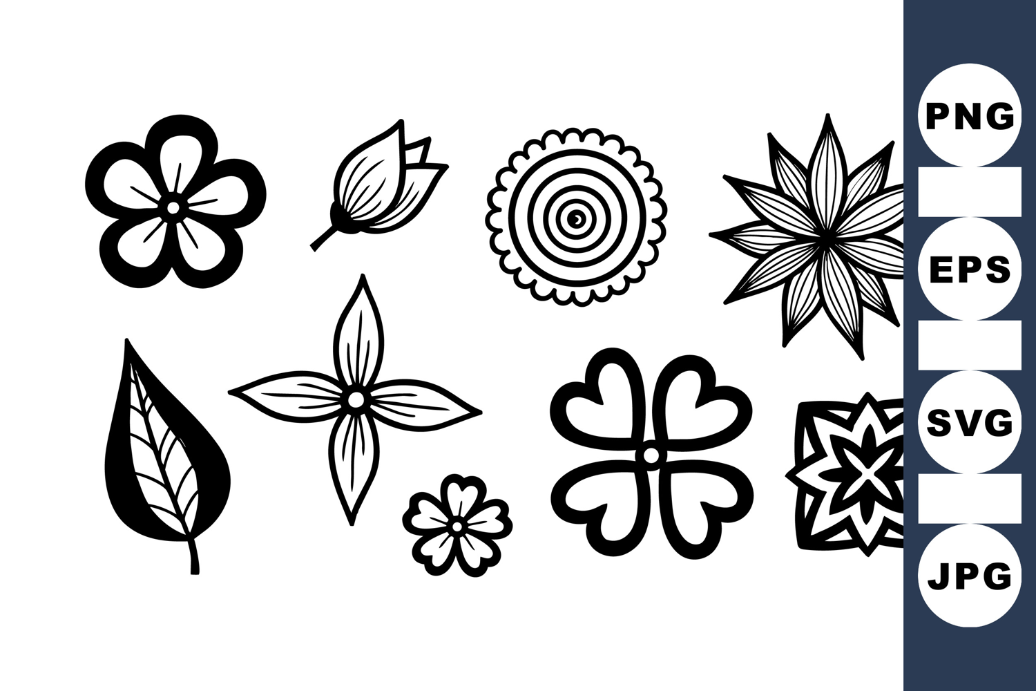 Hand Drawn Floral Black And White Design Botanical Line Art Vector Flower Clipart Floral Decorative Elements Spring Flower Bundle Nature Inspired Graphics Minimalist Vector Pack Simple Flower Illustrations Outline Flower Set