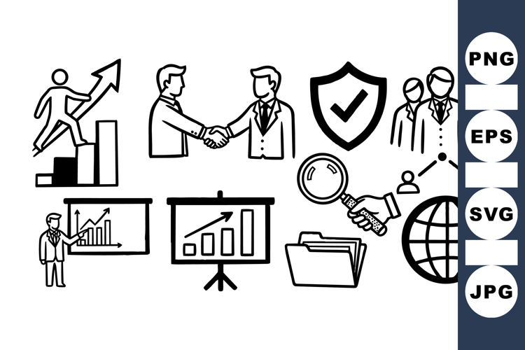 Business Growth Icons Security Shield Icon Corporate Strategy Icons Vector Business Clipart Business Meeting Set Team Management Vectors Office Presentation Graphics Marketing Analysis Clipart Global Network Illustration Performance Chart Vector