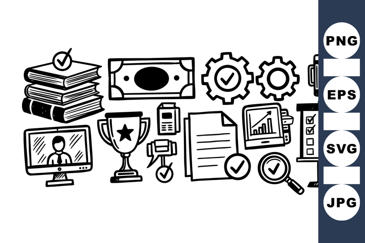Hand Drawn Icons Business Icon Set Digital Communication Icons Office Clipart Pack Award Trophy Clipart Strategy Planning Set Marketing Symbols Bundle Achievement Icon Kit Business Checklist Clipart Financial Document Graphics