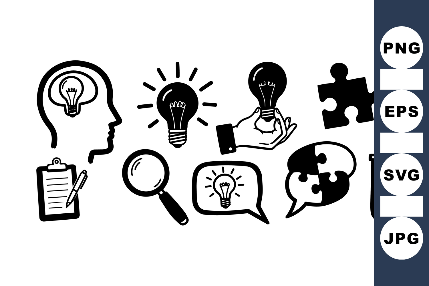 Hand Drawn Icons Light Bulb Clipart Creative Problem Solving Business Strategy Set Scientific Research Icons Innovation Vector Pack Puzzle Piece Graphics Creative Thinking Bundle Brainstorming Illustration Discovery Process Clipart