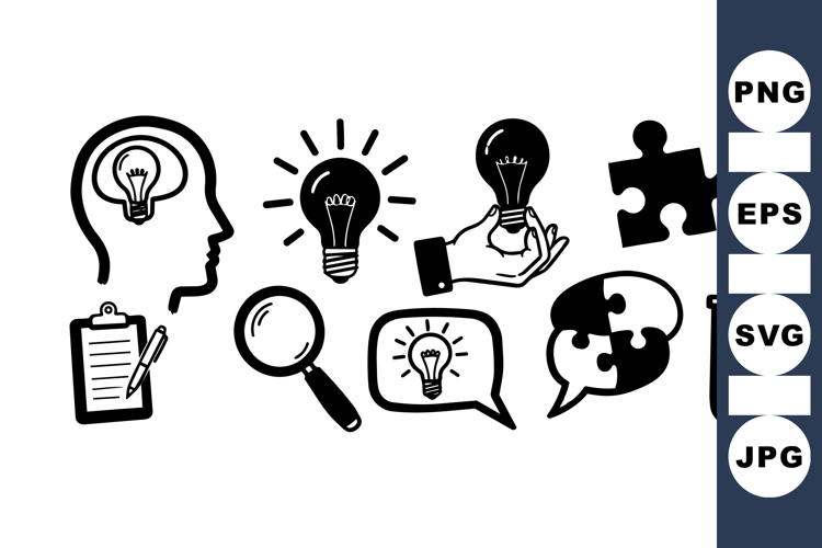 Hand Drawn Creative Problem Solving Icon Vector Set example image 1