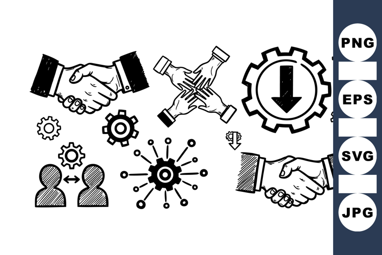 Hand Drawn Icon Business Icon Set Black White Icons Management Icon Collection Corporate Vector Pack Business Handshake Clipart Teamwork Icon Design Office Communication Graphic Business Gear Illustration Business Partnership Svg