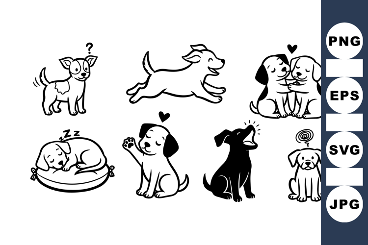 Cute Puppy Clipart Dog Silhouette Set Black And White Dogs Pet Lover Designs Animal Clipart Pack Playful Dog Bundle Puppy Vector Images Puppy Cartoon Graphics Fun Dog Illustrations Puppy Craft Bundle