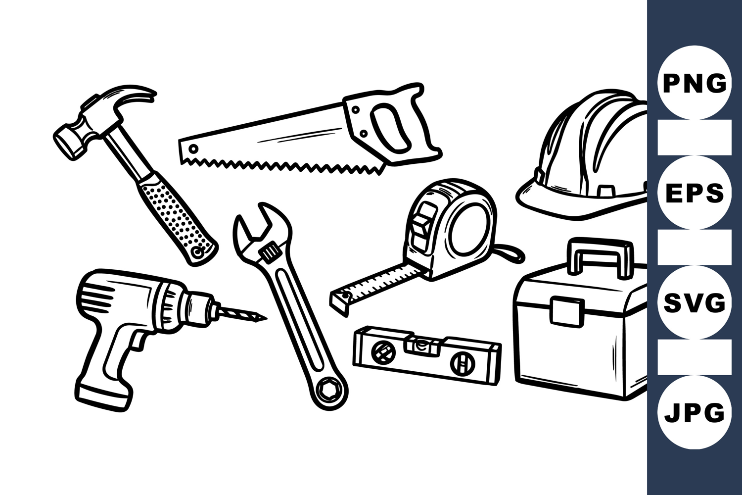Black And White Clipart Manual Construction Tools Digital Tool Bundle Industrial Work Graphics Toolbox Svg Collection Hand Drawn Repair Kit Worksite Safety Helmet Measuring Tools Pack Vector Construction Icons Tool Kit Digital Set