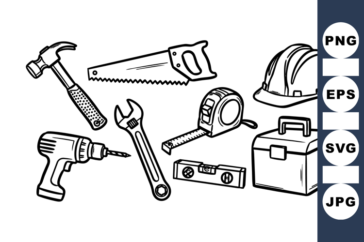 Hand Drawn Construction Tools Svg Clipart Set
