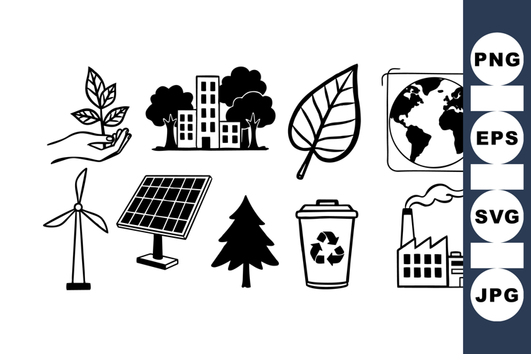 Recycle Bin Clipart Eco Friendly Icons Green Energy Vector Sustainability Icon Set Solar Panel Graphics Wind Turbine Illustrations Clean Energy Bundle Environment Clipart Pack Nature Conservation Design Urban Environmental Icons