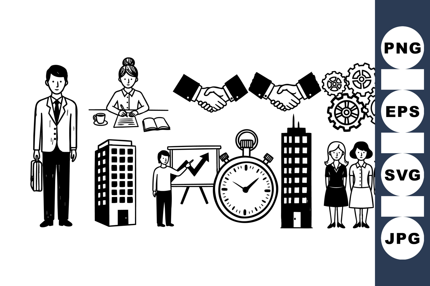Time Management Clipart Business Vector Clipart Corporate Team Icons Office Worker Illustrations Professional Meeting Graphics Business Presentation Set Office Building Vectors Business Handshake Images Teamwork Concept Illustrations Corporate Gears Design