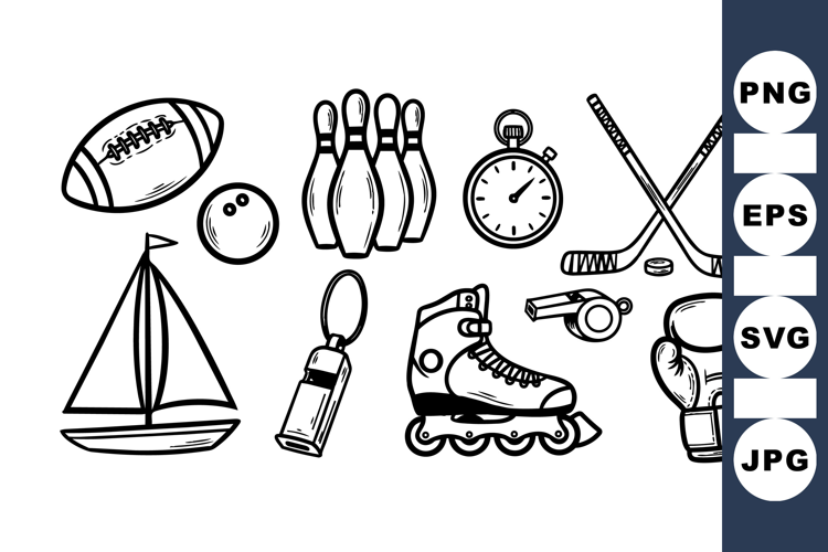 Hand Drawn Sports Sports Equipment Set Vector Sports Bundle Vintage Sports Icons Outline Sports Clipart Recreational Sports Icons Sports Game Illustrations Classic Sports Vectors Sports Icon Collection Digital Sports Graphics