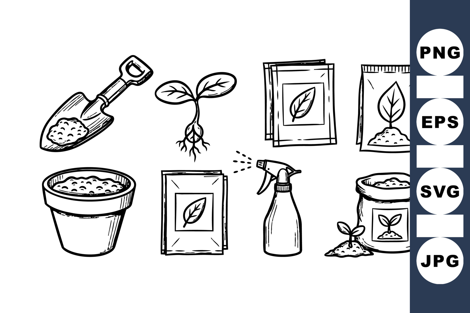 Gardening Tools Clipart Organic Gardening Clipart Spray Bottle Design Botanical Vector Art Hand Drawn Garden Plant Sprout Vector Seed Packet Set Soil Bag Illustration Flower Pot Graphic Garden Care Bundle