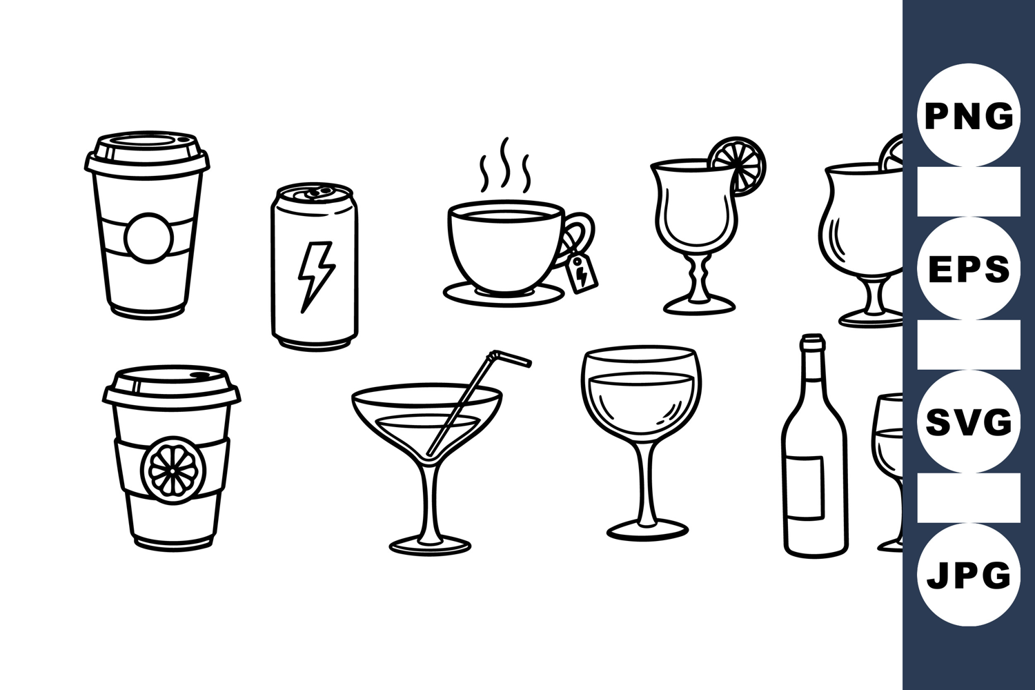 Black And White Clipart Cocktail Glass Bundle Wine Bottle Graphics Minimalist Drink Icons Digital Drink Set Outline Beverage Icons Coffee And Tea Clipart Energy Drink Illustrations Summer Party Icons Vector Drink Clipart
