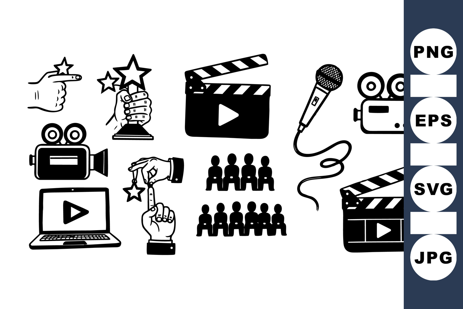 Film Camera Clipart Black Outline Icons Media Project Graphics Video Production Icons Microphone Vector Set Movie Clapperboard Images Crowd Audience Illustration Digital Recording Icons Studio Equipment Clipart Video Streaming Elements