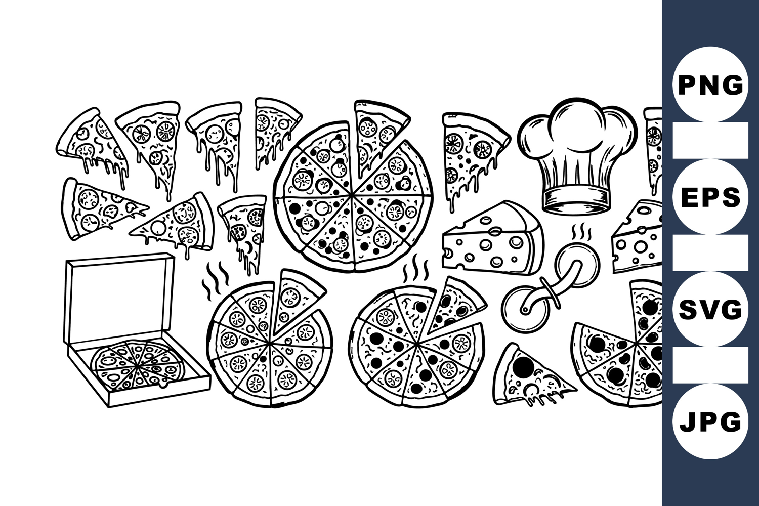 Pizza Party Graphics Italian Food Clipart Fast Food Illustrations Pizza Slice Clipart Black Line Art Hand Drawn Pizza Pizza Pie Illustration Chef Hat Graphic Pizza Box Design Foodie Clipart Set