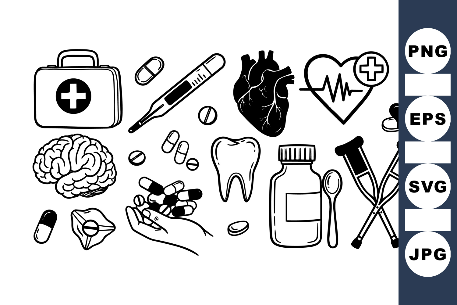 Hand Drawn Medical Health And Wellness Medical Icon Clipart Healthcare Vector Set First Aid Clipart Pack Hospital Tools Bundle Doctor Supplies Bundle Medicine Bottle Design Dental Care Vector Vector Health Icons