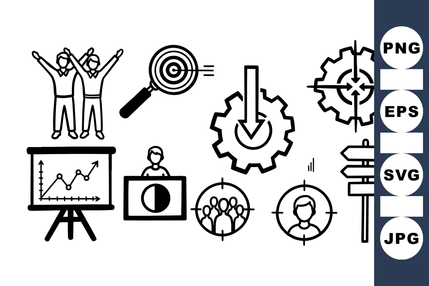 Business Strategy Icons Goal Achievement Icons Business Planning Set Project Management Icons Business Growth Illustrations Teamwork Business Set Data Analytics Symbols Marketing Presentation Graphics Target Market Graphics Customer Focus Icons