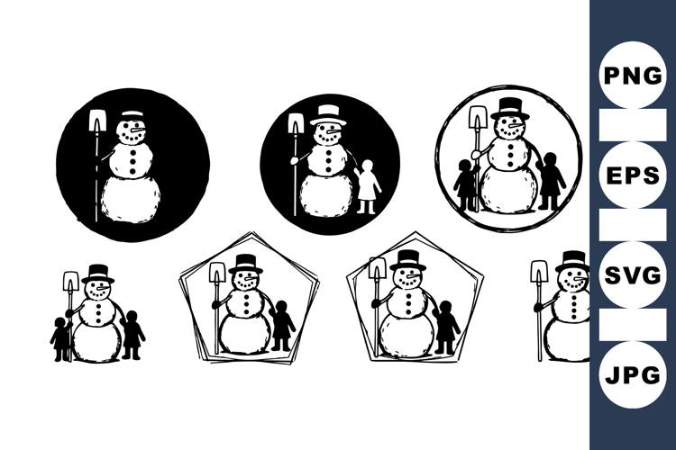 Kids Winter Svg Holiday Svg Bundle Black And White Svg Winter Holiday Decor Christmas Craft Designs Winter Snowman Silhouette Snow Shovel Clipart Festive Snowman Set Seasonal Craft Images Winter Silhouette Pack