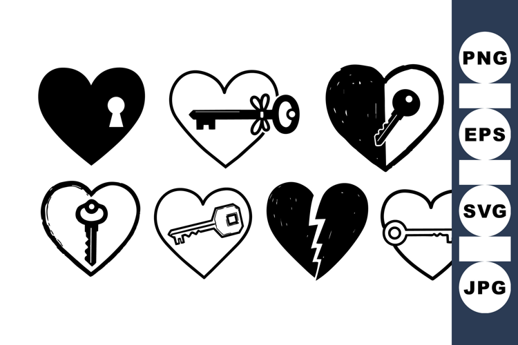 Valentine Day Graphics Hand Drawn Keys Broken Heart Clipart Romantic Love Icons Vintage Heart Clipart Love Symbols Set Black White Vectors Key And Heart Bundle Rustic Style Clipart Heart Key Illustrations